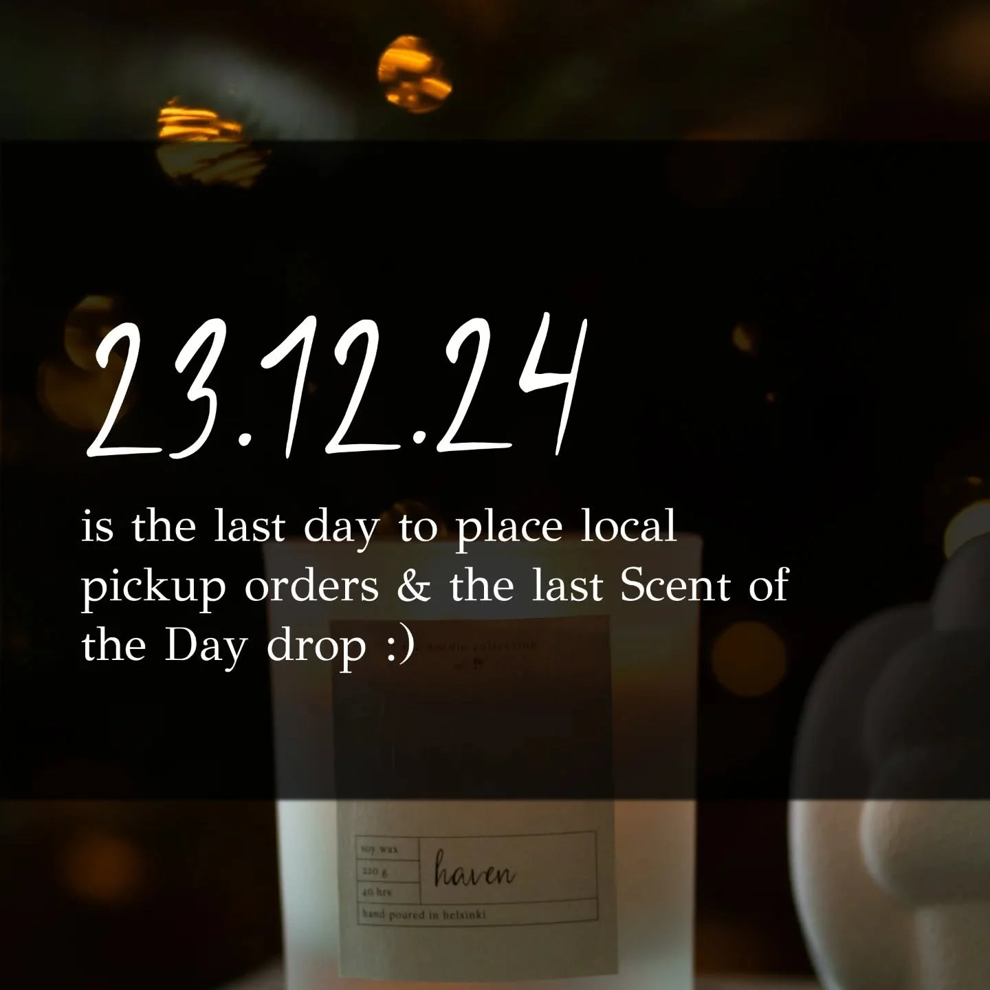 We’re a Helsinki-based home fragrance brand that’s all about the art of slowing down. We hand-pour our candles in small batches at a workspace with a view of the Gulf of Finland, using only the highest-quality